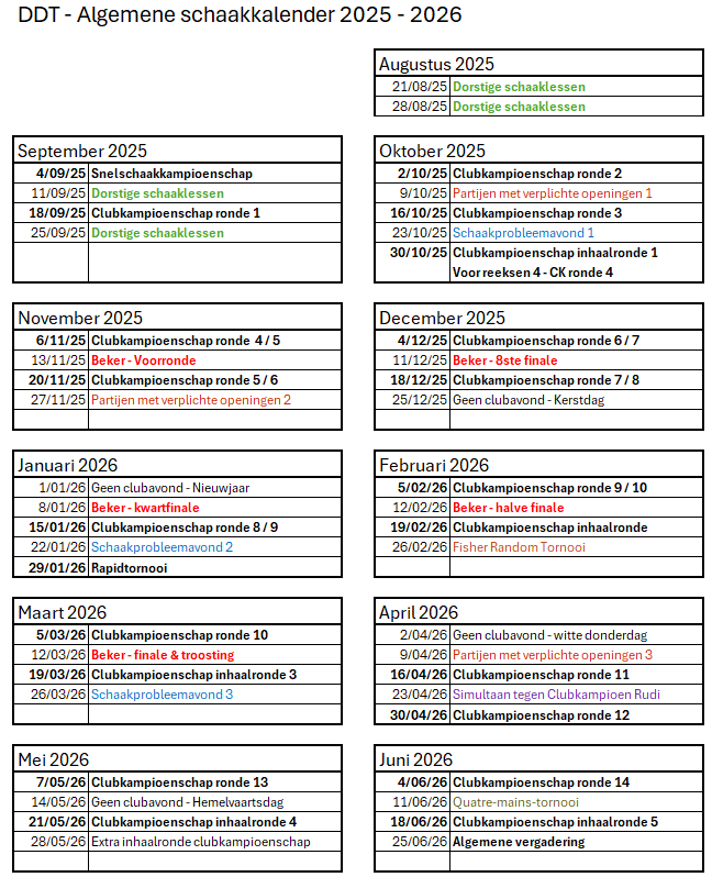 - Het clubkampioenschap loopt van begin september tot eind juni met een vaste kalender.