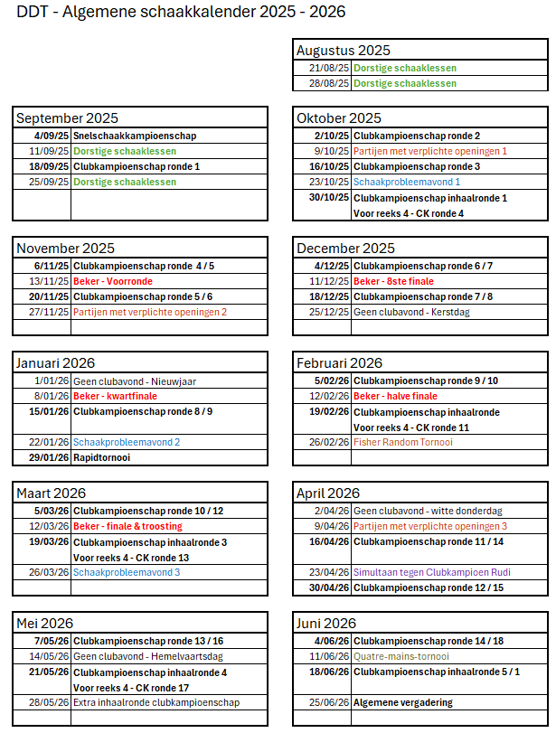 - Tijdens drie clubavonden spelen we partijen met een verplichte opening. Op die manier leer je ook andere openingen kennen dan die, die je meestal gebruikt.